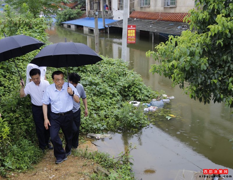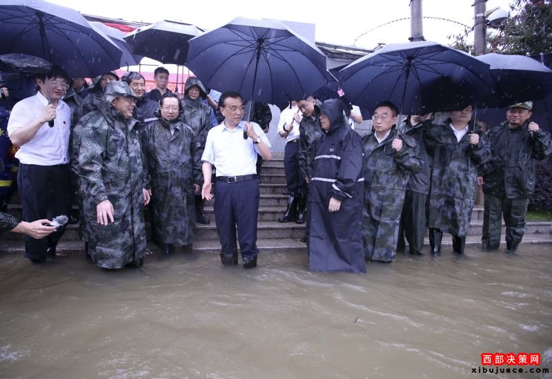 7月6日一早,李克強總理從湖南岳陽乘高鐵急赴湖北武漢,一路上大雨如注??偫硪幌萝嚕北记嗌絽^(qū)長江干堤倒口湖堤段管涌現(xiàn)場指揮搶險救災(zāi)。