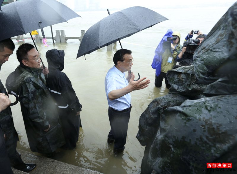 李克強冒大雨在武漢長江干堤現(xiàn)場指揮搶險救災(zāi)