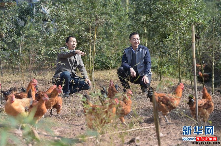 李寶強(右)在一戶百姓家了解林下養(yǎng)雞情況(2015年11月25日攝)。李寶強,眉山市青神縣瑞峰鎮(zhèn)天池村“第一書記”。為集中力量打好脫貧攻堅戰(zhàn),四川省選派1.5萬名優(yōu)秀機關干部到建檔立卡貧困村任職“第一書記”。黨的十八大以來,以習近平同志為總書記的黨中央高瞻遠矚、深謀遠慮,以高度的政治感、使命感和責任感,把扶貧開發(fā)工作提升至治國理政新高度,廣泛凝聚社會各界力量,推進實施精準扶貧方略,為到2020年全面建成小康社會奠定堅實基礎。按照中央部署,通過產業(yè)扶持、轉移就業(yè)、易地搬遷、政策兜底等方式,到2020年將實現(xiàn)7017萬農村貧困人口脫貧目標。新華社記者 薛玉斌 攝