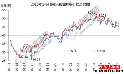 1-6月國際原油期貨價(jià)格走勢圖。來源:中宇資訊。