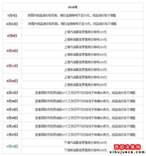 國家發(fā)改委歷次成品油價(jià)格調(diào)整匯總表。來源:隆眾石化網(wǎng)