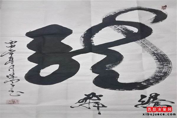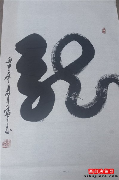 龍乃華人想象中最尊貴、最吉祥之物。生活之中無所不在,上下五千年,仍一以貫之,舉世無與倫比。華人更以龍的傳人自居,一旦風(fēng)起云涌,海生駭浪,則龍卷風(fēng)云,霞光萬丈。其“一筆龍”書法作品將書法和繪畫非常巧妙的而高度的融合,依易經(jīng)智慧,集意念、氣功為一體,運(yùn)筆如神,酬勁有力,一氣呵成,氣勢磅礴,形象逼真。整個字體呈現(xiàn)出一條蒼龍騰躍飛天之勢,寓意了中國龍騰飛吉祥的福兆,更展現(xiàn)了中華民族不屈不饒的民族精神。