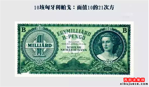 10垓匈牙利帕戈:面值10的21次方