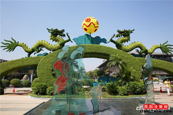 原標(biāo)題:芙蓉園閉園備央視秋晚 雙龍戲珠巨型花壇喜迎中秋