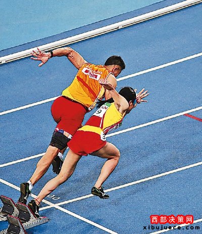當(dāng)?shù)貢r(shí)間9月16日,在里約殘奧會(huì)田徑比賽女子400米T11級(jí)決賽中,中國(guó)隊(duì)選手劉翠青和領(lǐng)跑員徐冬林以56秒71的成績(jī)奪得冠軍。圖為劉翠青(右)和徐冬林在比賽中起跑。