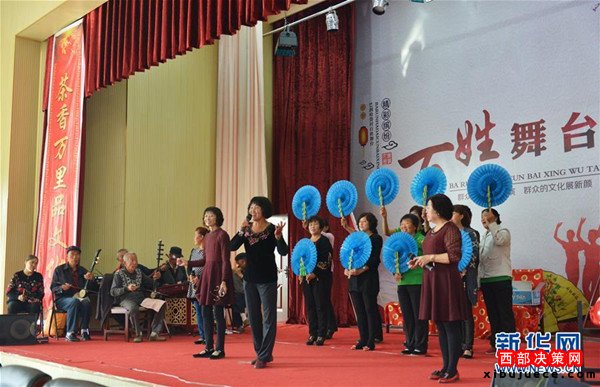 準格爾旗巴潤哈岱村村民在村里的文化活動室表演自導自演的節(jié)目(9月24日攝)。