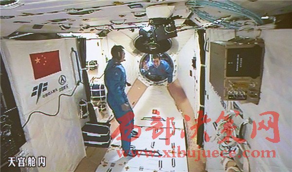10月19日,神舟十一號(hào)航天員景海鵬和陳冬順利進(jìn)入天宮二號(hào)實(shí)驗(yàn)艙。景海鵬(左)和陳冬在天宮二號(hào)實(shí)驗(yàn)艙向全國人民問好并敬禮(攝于北京航天飛行控制中心大屏幕)。
