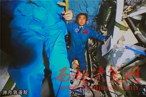 10月19日,神舟十一號(hào)航天員景海鵬和陳冬順利進(jìn)入天宮二號(hào)實(shí)驗(yàn)艙。這是景海鵬進(jìn)入天宮二號(hào)實(shí)驗(yàn)艙(攝于北京航天飛行控制中心大屏幕)。