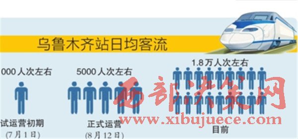烏魯木齊站統(tǒng)計數(shù)據(jù)顯示,隨著始發(fā)終到列車增多、周邊公交線路增多以及知曉度提升,該站日均旅客發(fā)送量也由試運營初期的1000人次左右,到8月12日正式運營的5000人次左右,再穩(wěn)步增加到目前的1.8萬人次左右。