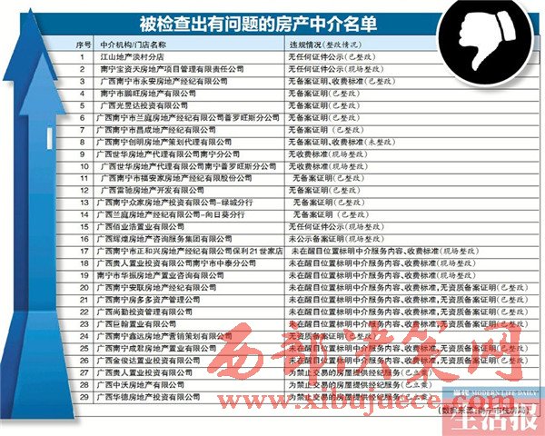 南寧市住房局通報房地產(chǎn)中介專項執(zhí)法檢查結果