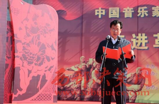 下午1點(diǎn),“長征精神代代傳——中國音樂家協(xié)會(huì)金鐘之星藝術(shù)團(tuán)‘送歡樂•下基層’”慰問演出在南梁“兩點(diǎn)一存”紅飄帶廣場(chǎng)拉開序幕,吸引了慶陽、華池周邊縣域的群眾近40000余人觀看了演出。中共慶陽市委書記贠建民、中國音樂家協(xié)會(huì)分黨組書記韓新安分別致辭,表達(dá)了他們的誠摯謝意和問候。