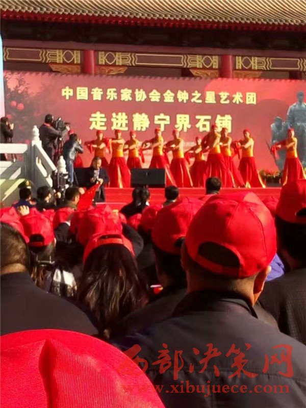11月3日,在全國(guó)上下認(rèn)真學(xué)習(xí)貫徹黨的十八屆六中全會(huì)精神、隆重紀(jì)念紅軍長(zhǎng)征勝利80周年之際,由中國(guó)音樂(lè)家協(xié)會(huì)、甘肅省文聯(lián)主辦,甘肅省音樂(lè)家協(xié)會(huì)、甘肅省文聯(lián)文藝志愿者服務(wù)團(tuán)、平?jīng)鍪形麄鞑?、平?jīng)鍪形穆?lián)承辦,靜寧縣委、縣政府協(xié)辦的“長(zhǎng)征精神代代傳——中國(guó)音協(xié)金鐘之星藝術(shù)團(tuán)‘送歡樂(lè)·下基層’慰問(wèn)演出活動(dòng)”在靜寧縣界石鋪紅軍長(zhǎng)征毛澤東舊居紀(jì)念館演出。