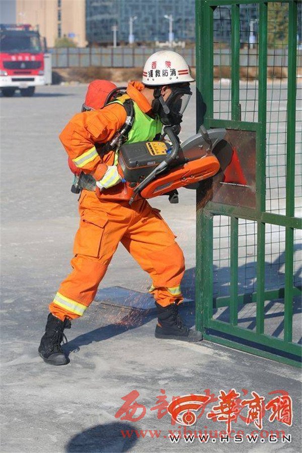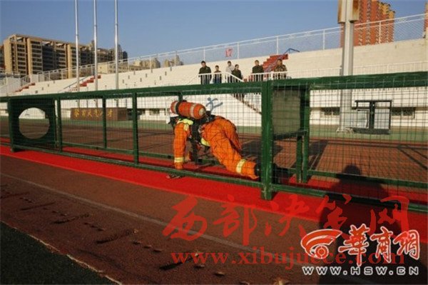 負(fù)重攀登10樓 榆林市消防大比武130余名鐵漢炫技