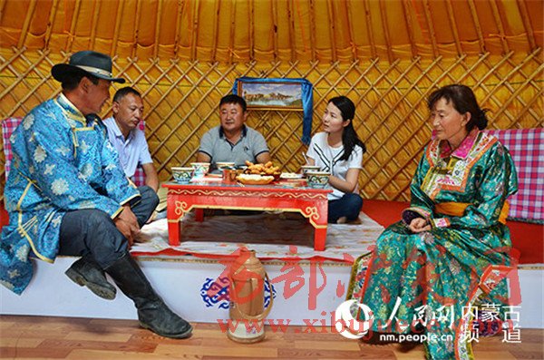 人民網(wǎng)記者在巴圖孟克開(kāi)辦的草原牧家樂(lè)蒙古包內(nèi)采訪