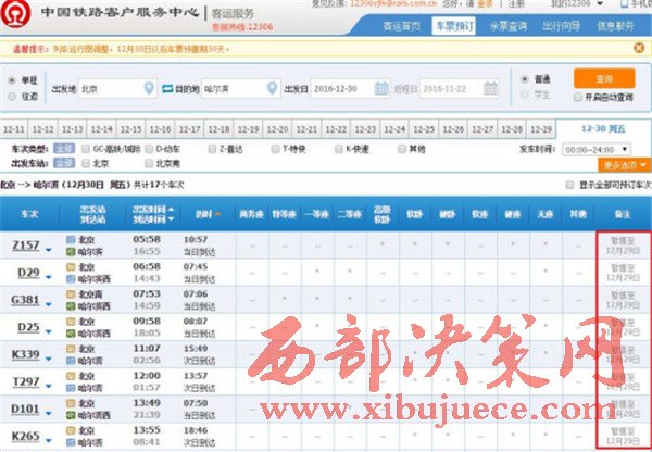 火車(chē)票暫售至12月29日。來(lái)自12306網(wǎng)站
