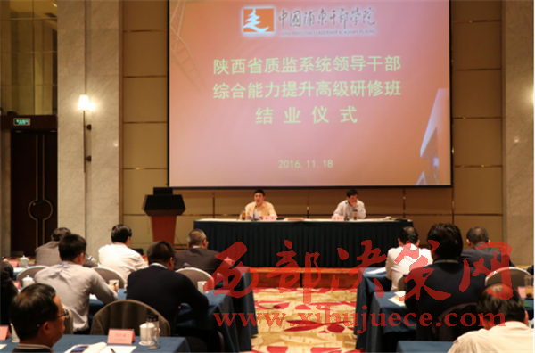 西部決策網(wǎng)訊11月14日至18日,陜西省質(zhì)監(jiān)系統(tǒng)領導干部綜合能力提升高級研修班在中國浦東干部學院成功舉辦。共有來自陜西省質(zhì)監(jiān)局機關各處室、直屬各單位和各市級、府谷縣、神木縣局共40名領導干部參加了培訓學習。此次為期5天的研修班,著眼于提升陜西省質(zhì)監(jiān)系統(tǒng)干部的綜合素質(zhì)和領導能力,為實現(xiàn)質(zhì)監(jiān)部門服務大局能力水平的新提升和服務發(fā)展效果的新提升提供更加堅強的思想政治和組織保證。陜西省質(zhì)監(jiān)局黨組書記、局長喬軍出席結(jié)業(yè)儀式并發(fā)表重要講話。省局黨組成員、副局長李晉利出席開班儀式作動員講話,并全程參加培訓學習。