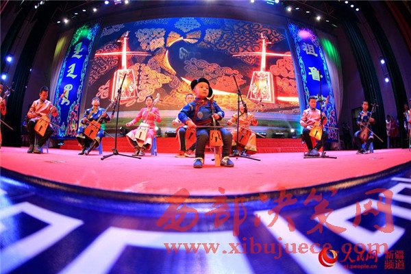 11月22日,博湖縣“祖魯節(jié)”晚會(huì)現(xiàn)場(chǎng),當(dāng)?shù)厍嗌倌瓯硌蓠R頭琴齊奏《開(kāi)都河》。