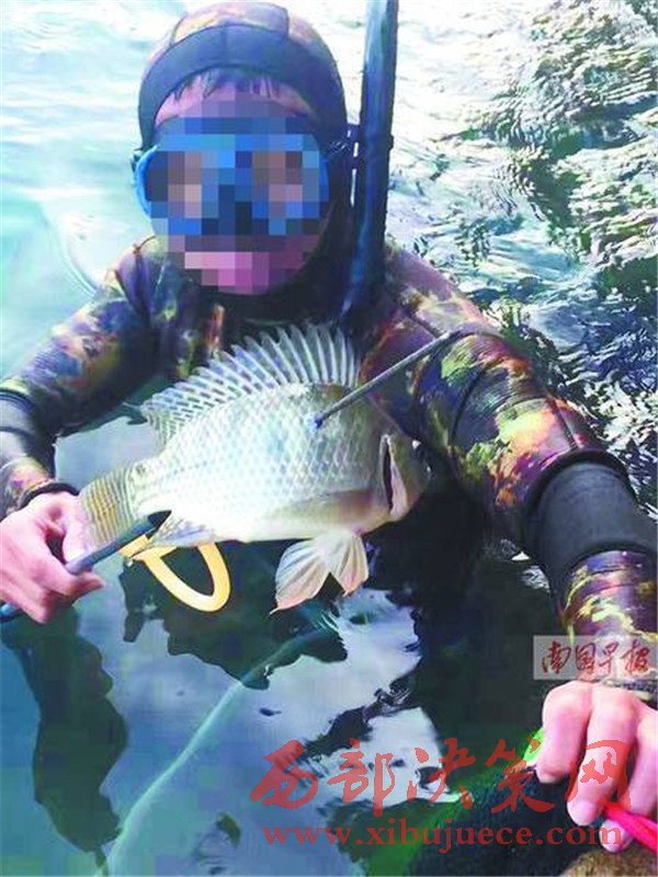 原來,前兩天網(wǎng)上流傳的身著迷彩潛水服男子并非真正的獵魚者。據(jù)當事男子介紹,11月20日下午2點左右,他與幾名潛友來到靈婉湖進行自由潛。他看到同行的潛友捕獵了一條長約1米的大魚。出于好奇,就拿起了這條魚來擺拍,可沒想到會造成這樣不好的影響,他對此感到懊悔和抱歉。
