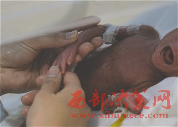 11月30日,在成都市第三人民醫(yī)院的新生兒重癥監(jiān)護(hù)室里,剛剛滿月的“007”正陷入睡夢中。“007”這個名字,是三醫(yī)院新生兒監(jiān)護(hù)室的護(hù)士們給她取的。她是一名特殊的女嬰,這個在媽媽肚子里呆了僅31周,就迫不及待來到世界上的早產(chǎn)兒,出生時,體重僅僅700克,幾乎與一瓶礦泉水的重量差不多,整個身軀只有女生的巴掌大小。