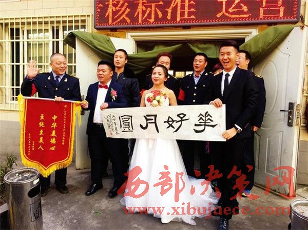 12月4日上午,一輛婚車突然開進西安市辛家廟公交樞紐站,新郎白磊和新娘房佳歡將一面寫有“中華美德心至純至美人”字樣的錦旗,送到了211路司機李軍紅手中,這一新鮮場面頓時引起了眾人圍觀。