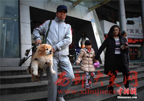 12月6日,重慶街頭一只半身殘廢的小狗依靠輪椅行走,吸引不少路人目光。