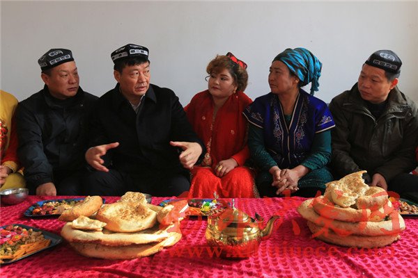 12月5日,博湖縣委書記董斌到本布圖鎮(zhèn)新布呼村看望“親戚” 巴哈爾古麗·吾斯曼一家。
