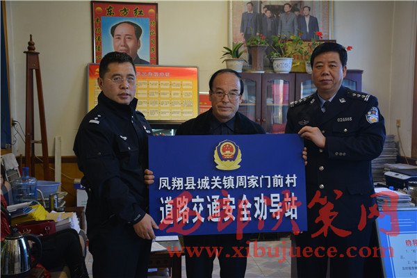 西部決策網(wǎng)訊(帥華鋒 李亮亮 通訊員 孟歡)12月8日,鳳翔交警大隊在鳳翔縣城關(guān)鎮(zhèn)豆腐村、糜桿橋鎮(zhèn)北水溝村、城關(guān)鎮(zhèn)周家門前三個村設(shè)立的農(nóng)村交通安全勸導(dǎo)站順利掛牌成立。首批勸導(dǎo)站是以村委會為依托,根據(jù)三個村的地貌、村落人群分散、道路里程較長等情況特點,在鳳翔轄區(qū)公路沿線的3個行政村率先建立起勸導(dǎo)站示范點。