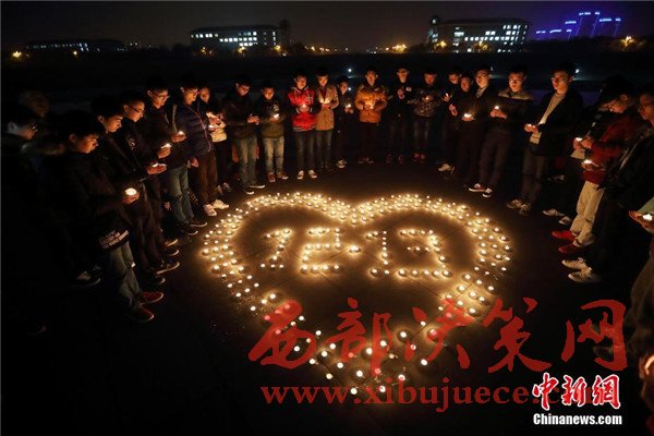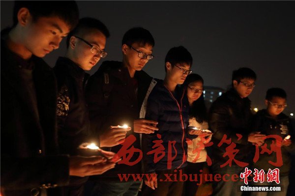 12月12日晚,在第三個(gè)國(guó)家公祭日前夜,主題為“愿逝者安息,為生者祈福”的燭光祭活動(dòng)在南京東南大學(xué)九龍湖校區(qū)內(nèi)舉行,來(lái)自該校機(jī)械工程學(xué)院的大學(xué)生們點(diǎn)燃蠟燭,擺放成心形和1213字樣,為南京大屠殺死難者集體默哀,寄托哀思。