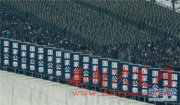 公祭現(xiàn)場(chǎng):升國旗和下半旗儀式舉行