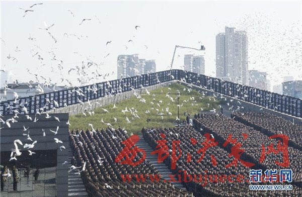 12月13日,3000羽和平鴿在公祭儀式現(xiàn)場(chǎng)振翅飛翔。