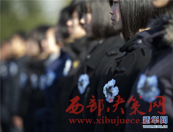 12月13日,各界代表胸前佩戴白花,靜靜肅立。