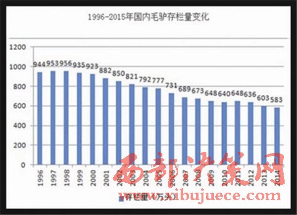 1996-2015年國(guó)內(nèi)毛驢存欄量變化