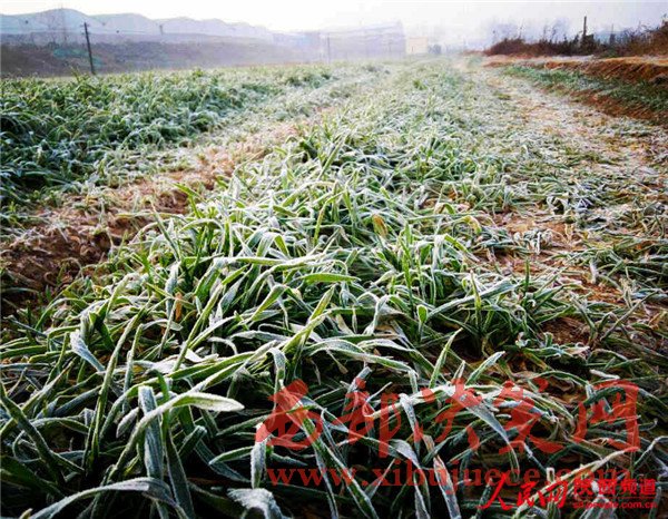 農(nóng)田里打了霜的麥苗