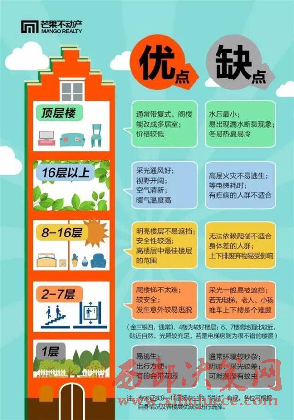 弊:在一些老的小區(qū),高層住宅樓一般水壓較小,有時會出現停水的現象。而且,生火災時不易逃生,并且火災散發(fā)的有毒氣體都是由下向上擴散的,因此是最危險的樓層。