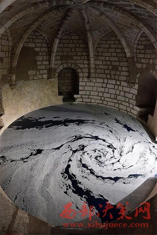 靠著食鹽和一雙穩(wěn)健的手,日本藝術(shù)家Motoi Yamamoto將法國(guó)南部一座中世紀(jì)城堡的地板變成了令人驚嘆的螺旋狀迷宮。