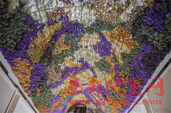 藝術(shù)家兼園藝愛(ài)好者Rebecca Louise Law整合了自己的兩大興趣,做出了一個(gè)頂棚。它是由15萬(wàn)美麗明亮的澳大利亞花組成的。用銅線和多樣的綻放的鮮花,Law裝點(diǎn)了墨爾本伊斯特蘭購(gòu)物中心的天窗。