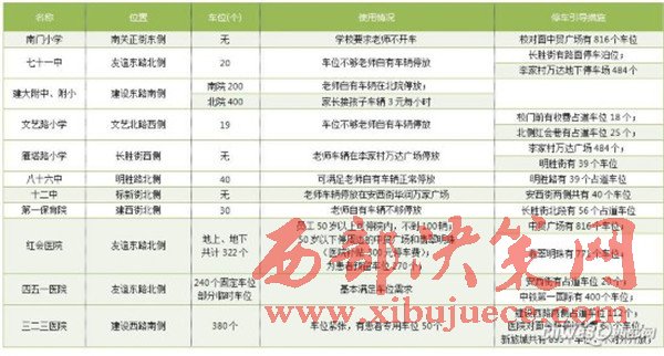 西安市交警支隊公布了碑林區(qū)內首批重點醫(yī)院、學校周邊的停車場的位置以及車位數(shù)字。
