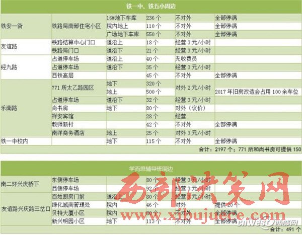這些停車場的位置包括鐵一中、鐵五小、交大附中、附小和幼兒園周邊、市三中周邊、南門小學等學校周邊的可停車位;西安市第九醫(yī)院、紅十字會醫(yī)院、武警醫(yī)院等周邊的停車位。