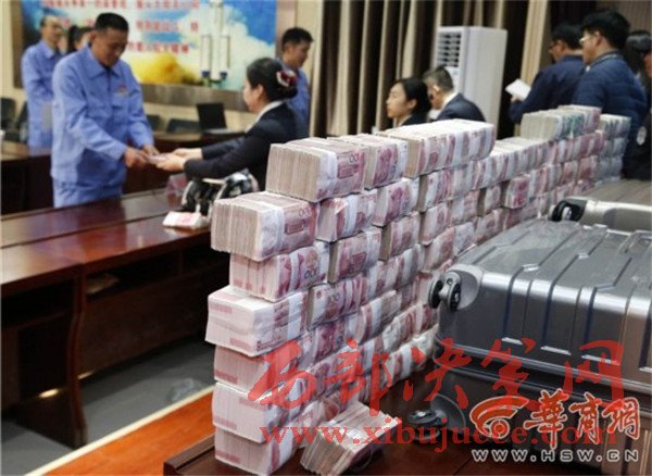 昨日上午9時(shí)20分,裝著1000萬(wàn)現(xiàn)金的武裝押運(yùn)車(chē)開(kāi)到工地,安保人員和企業(yè)員工將10萬(wàn)元一捆的百元大鈔碼出了一座“錢(qián)山”,看著眼前堆成小山似的現(xiàn)金,早早前來(lái)排隊(duì)的農(nóng)民工們也是興奮不已。