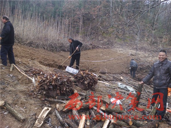 王存山(右一)現(xiàn)場指導(dǎo)群眾栽種豬苓