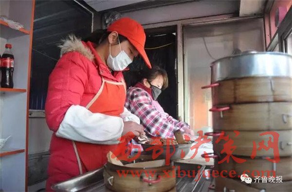 14日一大早,記者在無棣縣城找到了正忙著包小籠包的“用盡一生”。她本名趙平,無棣縣信陽鎮(zhèn)人,30歲,慈眉善目,笑起來有一種特別的吸引力。趙平的包子鋪其實(shí)就是一座簡易板房,而負(fù)責(zé)打掃這條街的70歲環(huán)衛(wèi)工程延新,休息之余喜歡來這里坐坐,喝點(diǎn)熱水,洗洗手,聊聊天。“主要感覺他掙這些錢實(shí)在不容易”,趙平說。