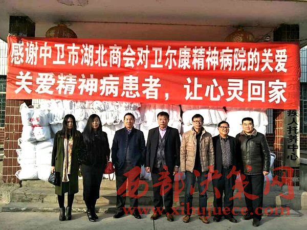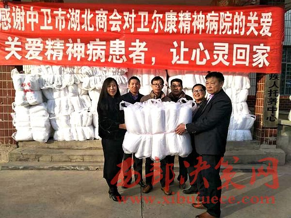 西部決策網(wǎng)訊(黃貞 楊新)2017年1月9日,中衛(wèi)市湖北商會(huì)一行數(shù)人在會(huì)長(zhǎng)朱秀東的帶領(lǐng)下,前往中衛(wèi)市衛(wèi)爾康精神病醫(yī)院進(jìn)行新年前慰問,并送去價(jià)值2萬余元的過冬棉被。
