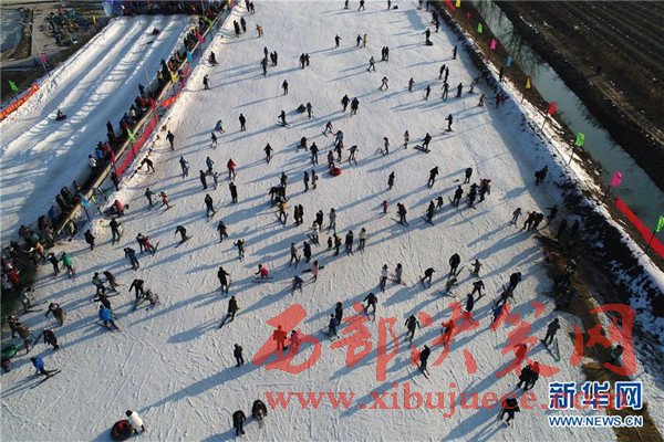 2月2日,游人在江蘇省淮安市碼頭鎮(zhèn)人工雪場感受冰雪的樂趣。