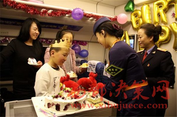 “祝你生日快樂”,2月5日,在蘭州西開往西寧的D2723次列車上,為一對“天路母子”舉行的別樣生日聚會引得網(wǎng)名點贊無數(shù)。