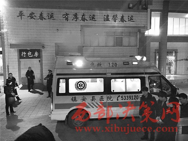 2月4日19時55分,重慶北開往呼和浩特東的K1536次緩緩地進(jìn)站停妥,如同往常一樣,站臺的工作人員有條不紊地組織著K1536次旅客乘降工作。“西安端乘降完畢……等等,1號,K1536次1號臥鋪車廂列車員要交個病人下車醫(yī)治,是個孕婦,你過來下”!當(dāng)班的客運(yùn)值班員王麗英,從站臺中部邊奔跑著,邊詢問了解情況。正在站臺盯控值班的黨總支書記趙鵬、車站站長何曉輝、安全員呂建軍、客運(yùn)主任冀文娟立即緊隨上前了解情況,隨即通知客運(yùn)員許劍鋒立即撥打120,詳細(xì)告知情況,安排好隨車醫(yī)護(hù)人員,并安排站臺工作人員準(zhǔn)備好椅子、被褥等簡單的輔助用品。將兩名旅客接下,等待救護(hù)車的時候了解到,丈夫譚超、妻子鐘紅英都是重慶人,妻子已經(jīng)懷孕8個多月,預(yù)產(chǎn)期在2月20日左右,帶著2歲半的大兒子,原計劃坐火車從重慶到寶雞生產(chǎn),沒想到剛到鎮(zhèn)安站停車期間突然感到身體不適,有臨盆現(xiàn)象,不得已才要求下車。