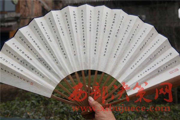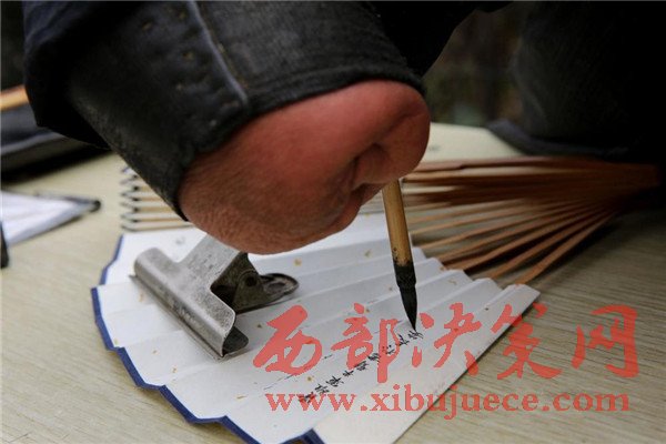 賈維軍的絕活是在折扇上寫(xiě)蠅頭小楷,賈維軍憋著氣一筆一筆地寫(xiě)著,字少一點(diǎn)的扇面賈維軍也要花2個(gè)小時(shí)才能完成,要是在扇面上寫(xiě)《蘭亭序》,賈維軍得花整整一天時(shí)間。每天寫(xiě)六七個(gè)小時(shí)的蠅頭小楷,賈維軍的眼睛和腿都吃不消了,每天收攤回到出租房眼睛酸疼的流淚,要點(diǎn)眼藥水,靜脈曲張的雙腿到家后也幾乎不能站立。