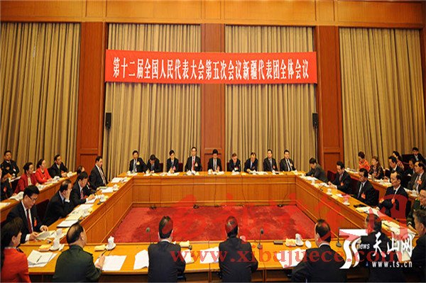 3月5日下午,出席十二屆全國人大五次會議的新疆代表團(tuán)舉行全體會議,審議政府工作報告。