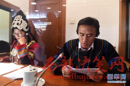 由中國民族語文翻譯局組建的十二屆全國人大五次會議和全國政協(xié)十二屆五次會議秘書處民族語文翻譯組,承擔著大會民族語文翻譯任務(wù)。他們的主要工作包括:用蒙古、藏、維吾爾、哈薩克、朝鮮、彝、壯7種民族語文進行大會文件的翻譯;負責7種民族語文大會文件的印制;舉行全體會議時,進行現(xiàn)場同聲傳譯;負責向北京、內(nèi)蒙古、廣西、四川、西藏、青海、新疆等省區(qū)市新聞媒體提供大會主要文件的民族文譯稿等。圖為3月7日晚,民族語文翻譯組工作人員牧蘭、敖敦高娃、哈斯布日古德(從左至右)在為第二天的大會同聲傳譯做準備。
