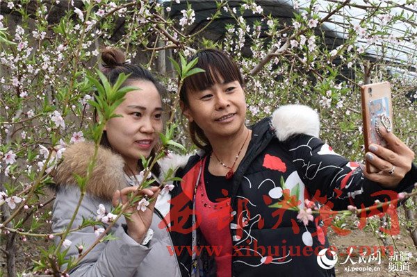 在新疆生產(chǎn)建設(shè)兵團(tuán)第五師八十六團(tuán)一溫室大棚里,桃花盛開(kāi),春意盎然,一游客帶著孩子正在觀賞桃花。目前,桃花迎來(lái)了盛花期,吸引了周邊游客前來(lái)賞花、拍照,感受春天的氣息。
