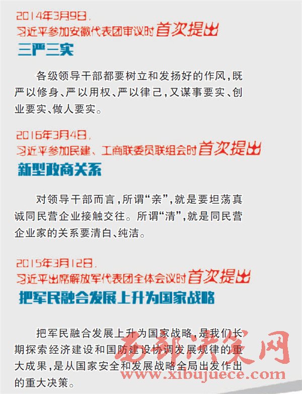 編者按:每年全國(guó)兩會(huì)期間,習(xí)近平總書記都要深入團(tuán)組參加討論、審議,與代表委員們共商國(guó)是,圍繞治國(guó)理政新理念新思想新戰(zhàn)略,發(fā)表了一系列重要講話,深刻回答了在新的歷史條件下黨和國(guó)家發(fā)展的重大理論和現(xiàn)實(shí)問(wèn)題,包括五大發(fā)展理念在內(nèi)的治國(guó)理念和執(zhí)政方略,內(nèi)涵不斷豐富,實(shí)踐不斷深入。